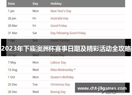 2023年下庙澳洲杯赛事日期及精彩活动全攻略